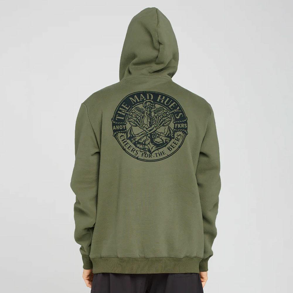 Get ready to crack open a cold one in style with The Mad Hueys' Cheers for the Beers Pullover in Olive! This pullover is built for ultimate comfiness and style, made from top-notch materials that are soft as a roo's pouch. Product Features 80% Cotton 20% Polyester 280gsm Contrast Drawstrings with Hood Screen Print Brushed Fleece Kangaroo Pocket Woven Label Model Our Studio Model Sam wears a size L Height: 183cm, 6'
