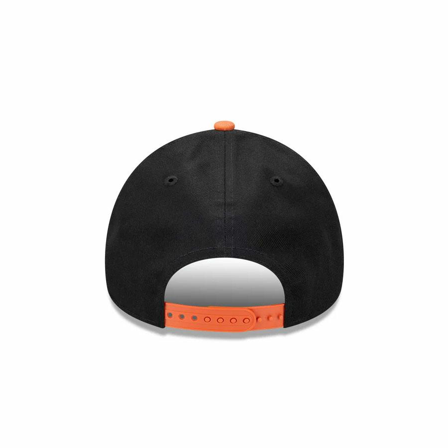 The Chicago Bulls Burnt Redwood 9FORTY A-Frame Snapback features an embroidered Bulls logo in redwood/white on a ptiched black crown, a redwood visor with grey undervisor, and an adjustable snapback enclosure.