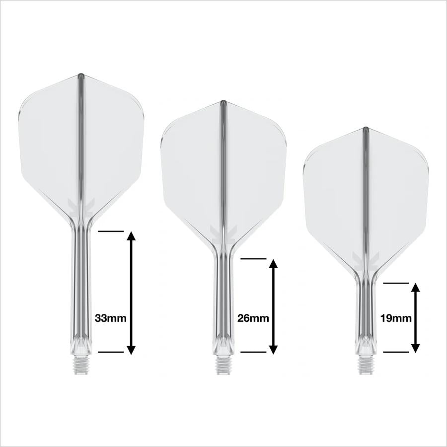 A high performance all in one flight and shaft system featuring Target’s patented flex twist system. Available in a standard small / No6 flight size. Lengths are measured from the base of the shaft (excluding thread) to the flight. Length: Short 19mm