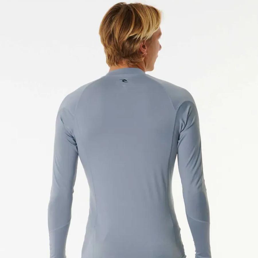 Features: Style: Men's Rashvest Colour: Tradewinds Material: Stretch Poly Micro Mesh Performance fit Heat transfer Front and back print Elastic boardshort loop UPF 50+UV sun protection Neoprene hem Shock cord hem Long sleeves