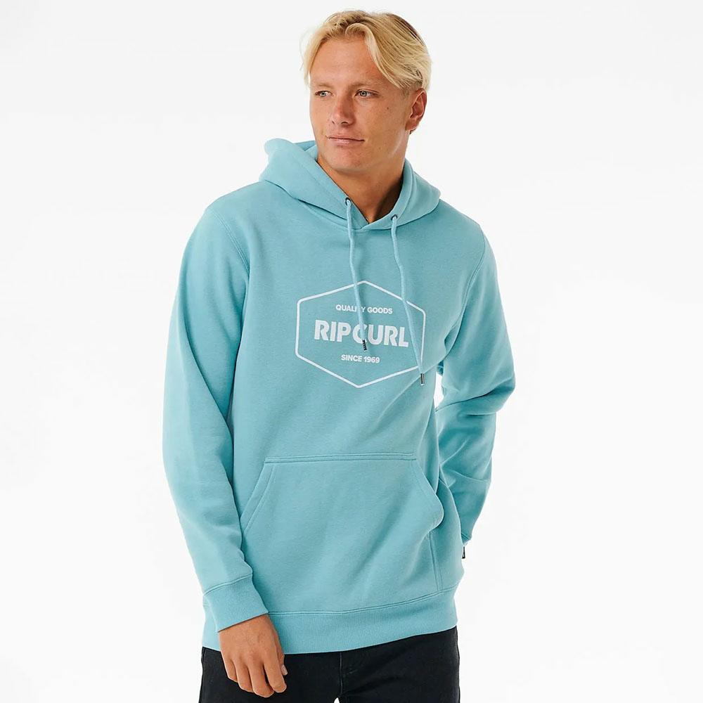 Elevate your surf style with the Stapler Hood, showcasing a front print, kanga pocket, and woven flag label for a versatile and laid-back look.